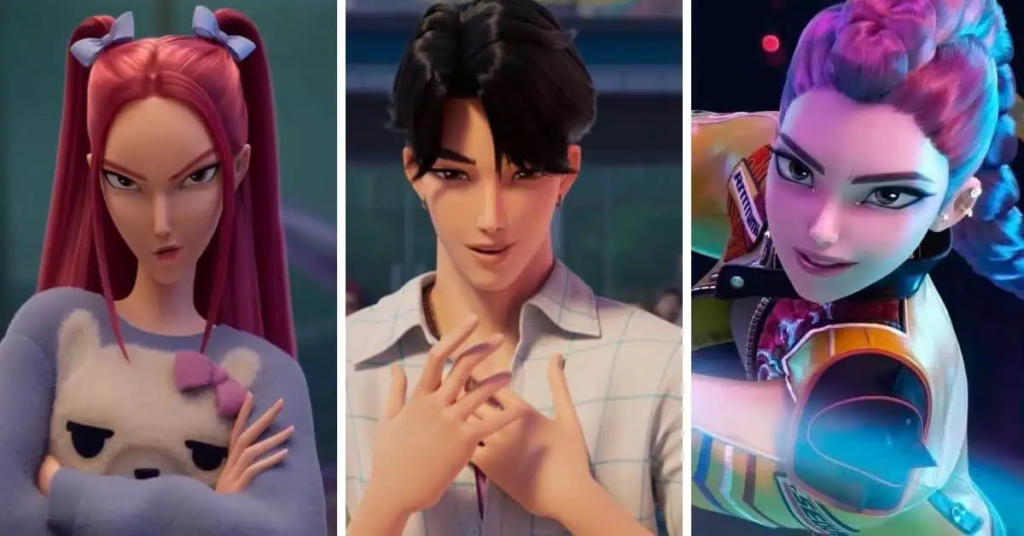 Huntrix must maintain their flawless idol image while hiding their dangerous second life as demon hunters. Their main rivals, the Saja Boys, appear to be a competing K-pop boy band but are later revealed to be demons themselves. This rivalry adds tension while also blurring the line between good and evil.